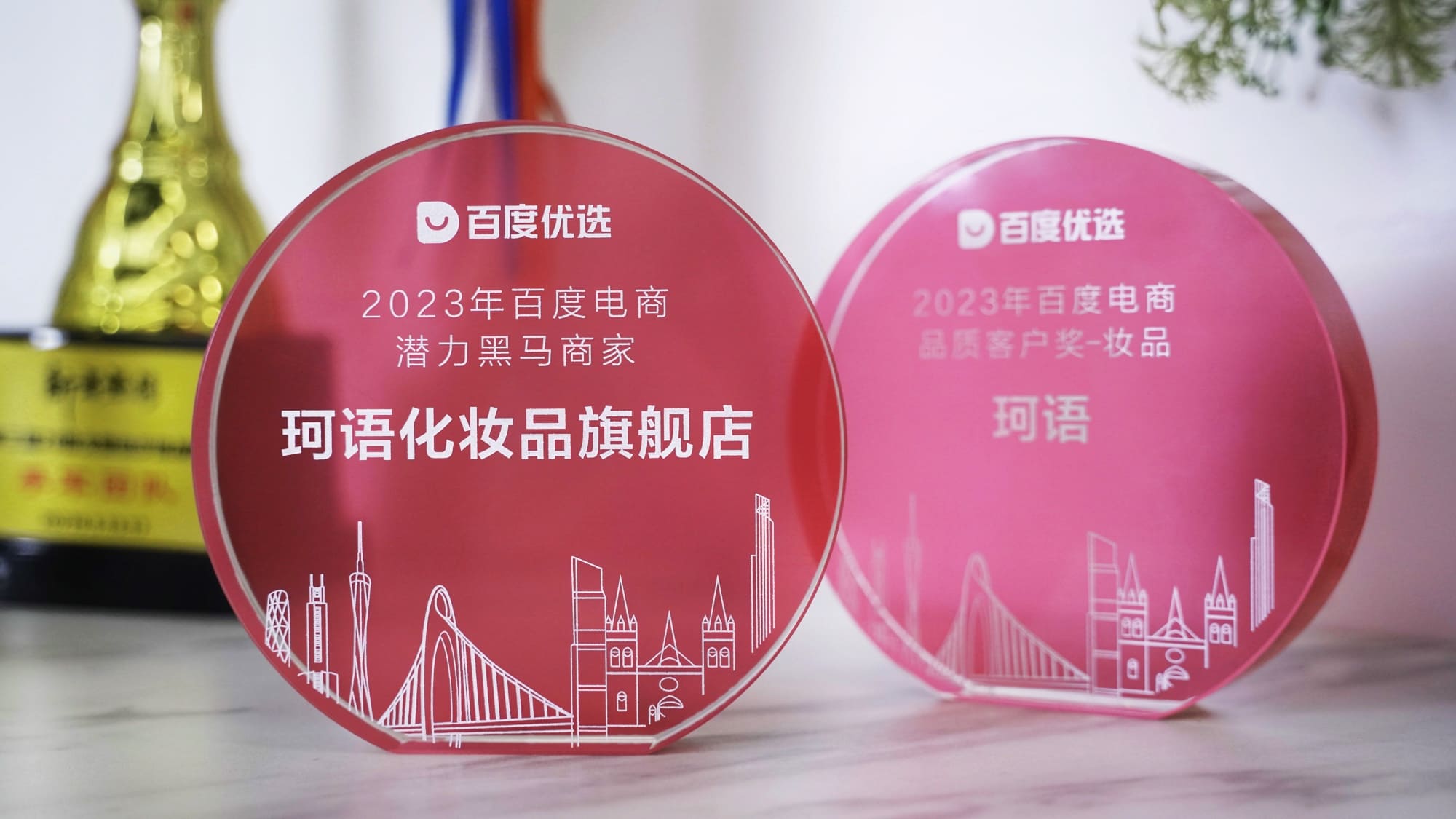 珂语荣获百度电商(妆品)“品质客户奖”;珂语化妆品旗舰店,被评为百度电商年度“潜力黑马商家”